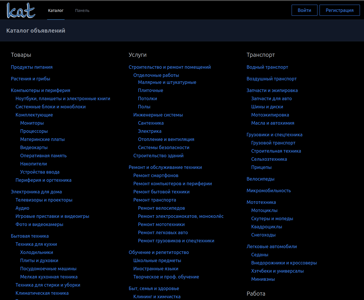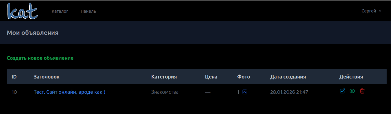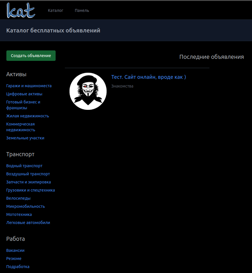 Прошёл месяц с начала работ... И что-то уже заработало. Можно создавать-просматривать-редактировать-удалять объявления (CRUD), есть список разветвленных категорий.